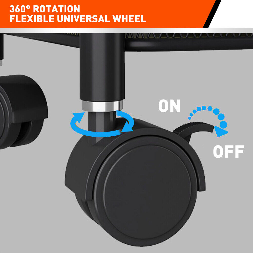 Rotating storage shelf rack are made of iron which is sturdy and not easily; Sprayed with black powder coating, it is rust and waterproof, not peeling off or tarnish easily,even in the bathroom, laundry room and other humid environments you don't have taco worry about it