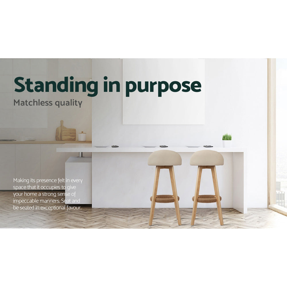 Artiss 2x Bar Stools Padded Leather Wooden Beige
