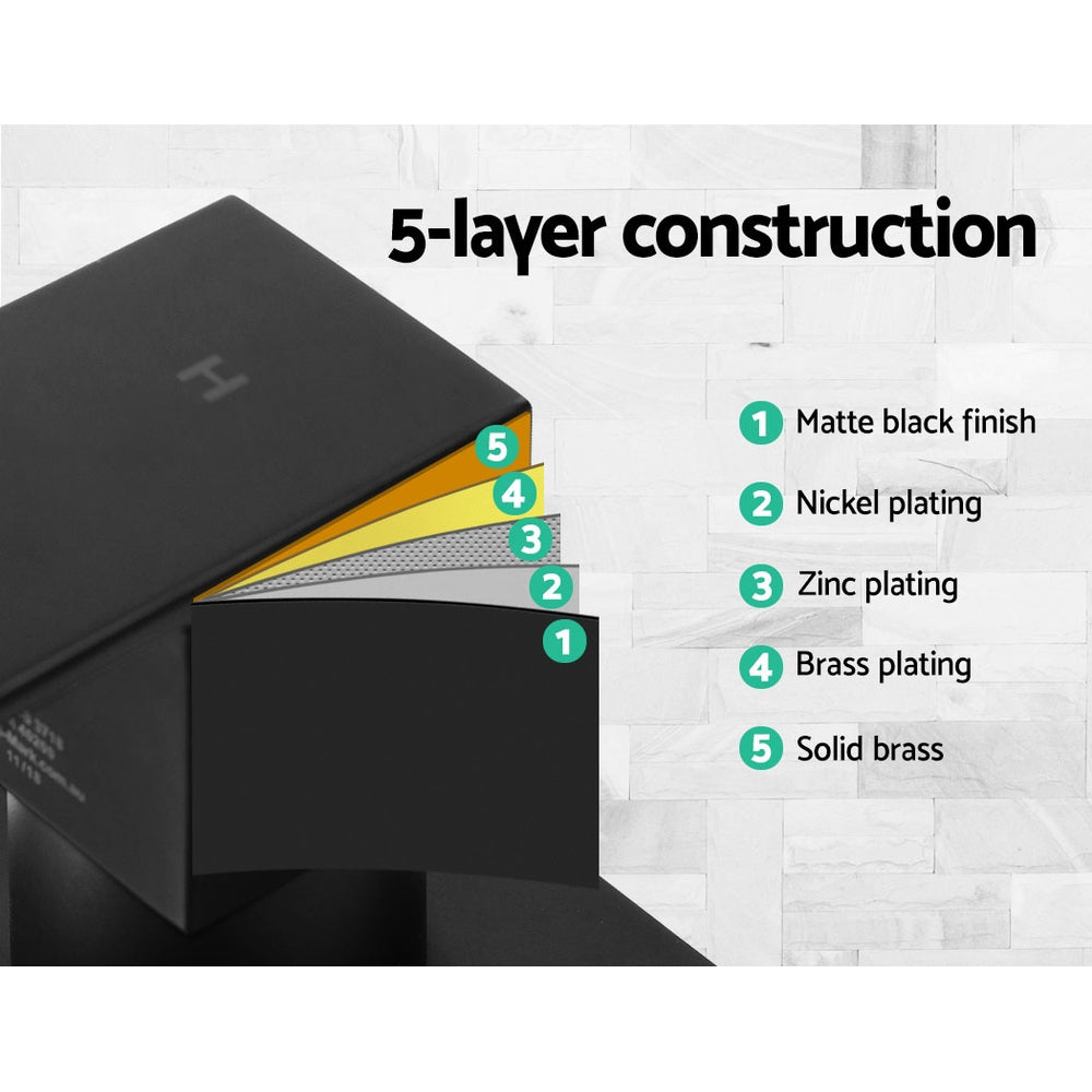 For a perfect mix of the right water temperature, our Shower Taps are simply convenient to use. The solid brass construction make this ensemble absolutely smooth and durable with a drip-free 35mm ceramic cartridge to prevent leakages. The brilliante matt black finish actually comprises a multi-layer finishing process with zinc, nickel and brass plating. The taps are marked as hot and cold markings for hassle-free use. Not least, the shower taps carry a WaterMark certification and comply with Australian standard AS/NZS 3718 for total peace of mind installation and use.