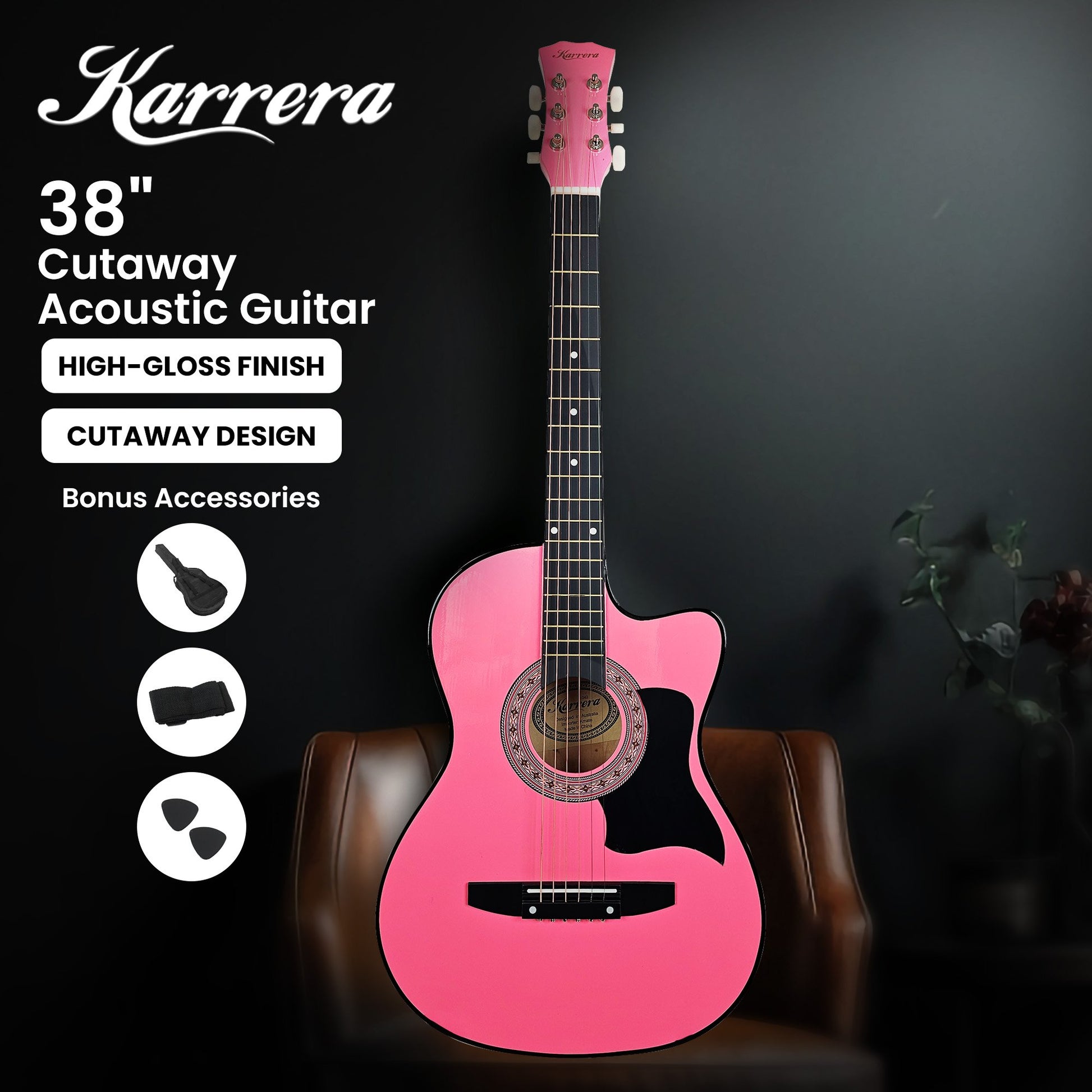 Karrera 38in Cutaway Acoustic Guitar with guitar bag - Pink