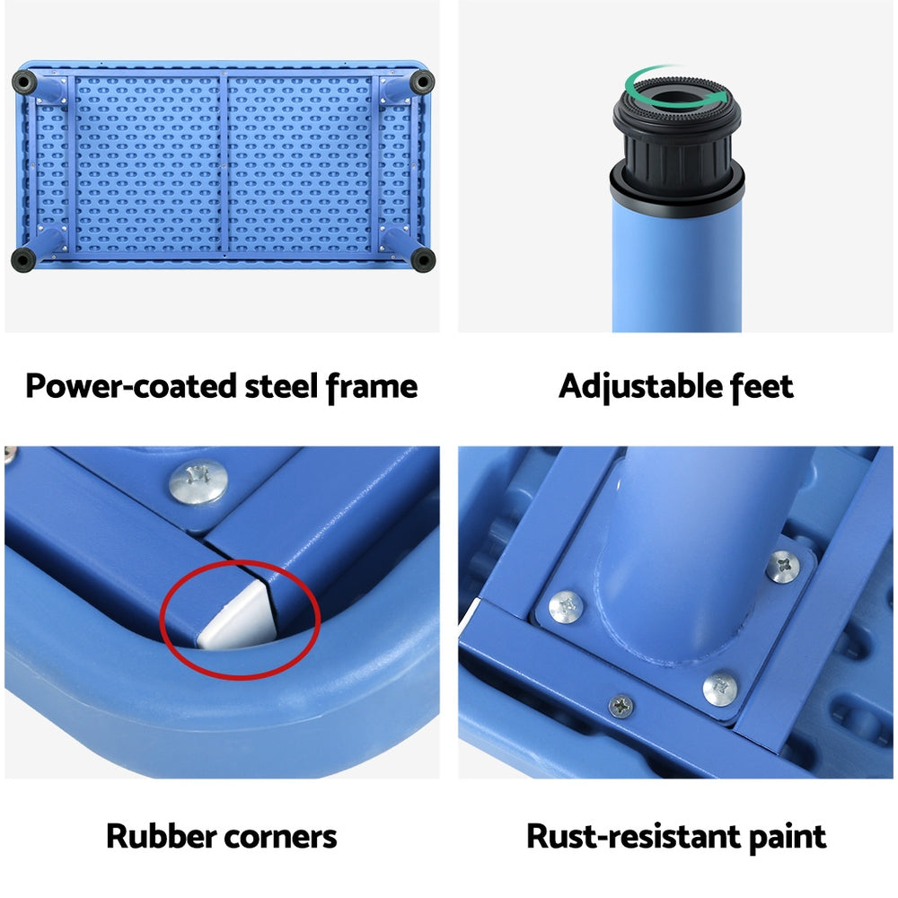If your kids love getting creative, you'll love the Keezi Kids Activity Table. It may look like a simple table, but with a powder-coated steel frame and high-quality HDPE plastic exterior, the table is built for heavy-duty, long-lasting use. The table is coated with rust-resistant paint, features upgraded rounded corners for safety, and has a 100kg weight capacity to hold everything your child needs. Adjustable feet ensure the table is always the perfect height for your children to play, draw, read, write or craft. You can easily use the table indoors or outdoors – whatever the day requires. Best of all, the table is EN71 European Safety of Toys certified, so you can rest assured you made the right choice for your children. No matter the activity, the Keezi Kids Activity Table is ready for action.