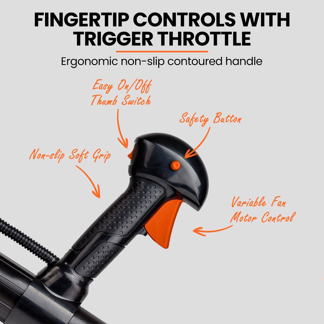 Thanks to the included interchangeable work heads, you can clear out everywhere from driveways to garden beds. A super flexible air outlet gives you optimal reach, and with a sensitive trigger, you can always apply just the right power to blow away even the biggest maintenance chores. So, stop toiling with that broom and rake - order your MTM at Mytopia today and employ the winds of change!