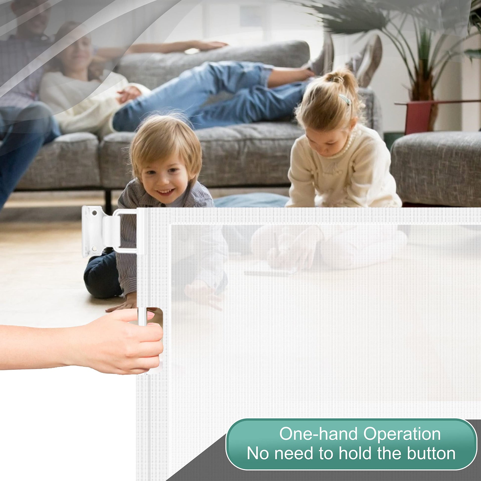 This extra retractable baby gates can be extended up to 3m wide and 86cm tall. Mesh can be completely retracted away when not in use.