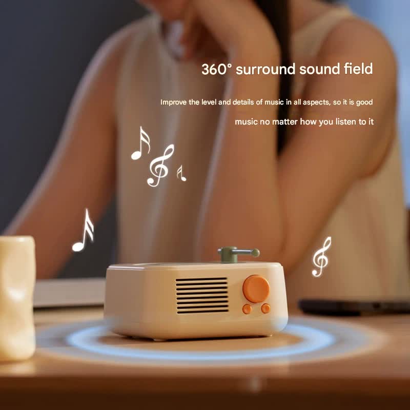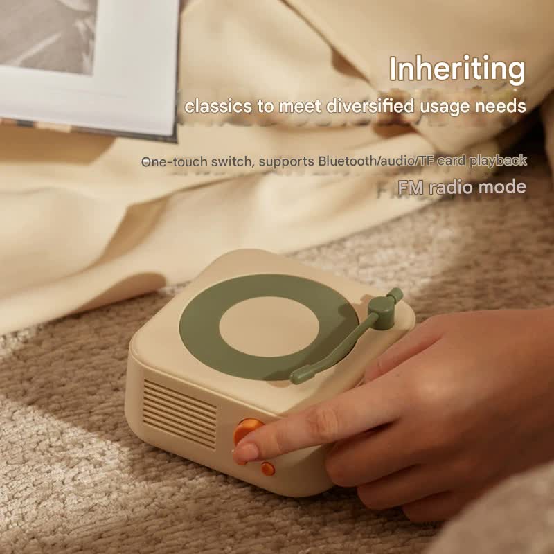 Experience a nostalgic audio journey with our Retro Turntable Bluetooth Speaker. This charming device combines a classic vinyl record player design with modern audio technology, delivering high-definition sound quality through Bluetooth 5.3. Enjoy a 360-degree surround sound field that enhances the layers and details of your music, making every listen a delightful experience. This multi-functional speaker supports Bluetooth playback, audio input (AUX), TF card playback, and even features an FM radio mode, catering to diverse listening needs. The simulated vinyl record on top can rotate, adding a touch of ritual and charm to your listening sessions. Its compact and stylish design makes it a perfect addition to any room, offering both great sound and a unique aesthetic.