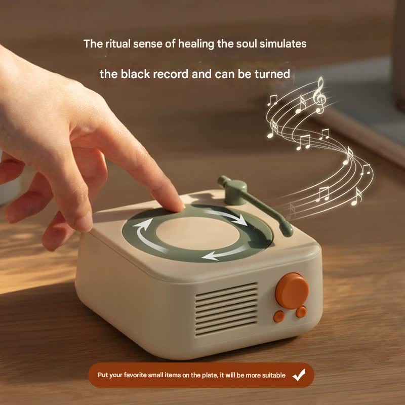 - Rotatable Simulated Vinyl: The top "record" spins for a tactile and visually engaging experience.